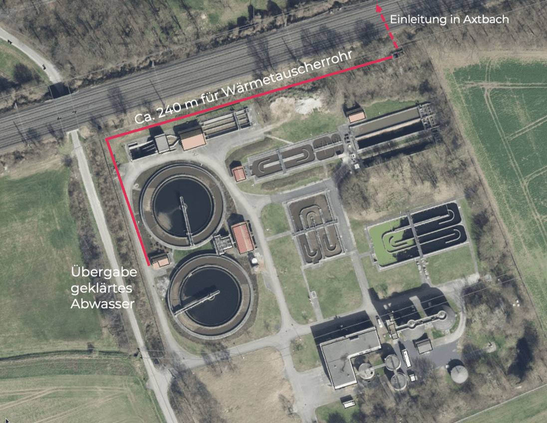 Das kalte Nahwärmenetz im Weitkamp II in Oelde setzt auf geklärtes Abwasser als Wärmequelle. Das Abwasser der Kläranlage Oelde hat eine Durchschnittstemperatur von rund 14 °C. Aus dem geklärten Abwasserstrom der Anlage wird die vorhandene Wärme ausgekoppelt, über ein Wärmenetz in das Baugebiet und in die Häuser geleitet. Dort wird sie mittels Wärmepumpen nutzbar gemacht und auf die gewünschte Temperatur angehoben.
